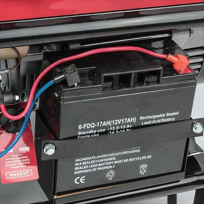 Бензиновый генератор MaxCut MC6500E оснащен двигателем с верхним расположением клапанов OHV, что значительно увеличивает ресурс, снижает выхлоп и уровень шума. Датчик контроля масла исключает запуск и работу генератора при отсутствии или низком уровне масла в картере. Синхронный электрогенератор с системой автоматической регулировки обеспечивает стабильное выходное напряжение и частоту тока. Выход 12 вольт позволяет подзарядить автомобильный аккумулятор в экстренном случае. Усиленная передняя панель с утопленными элементами управления снижает риск механических повреждений.