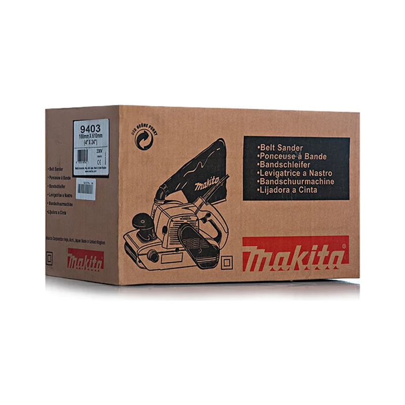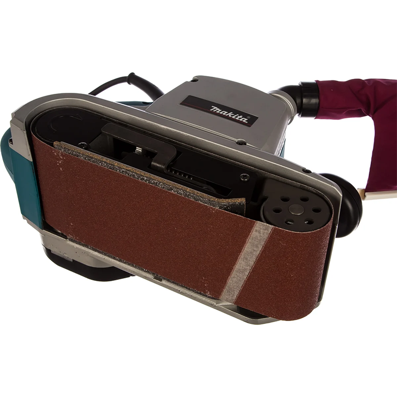 Ленточная шлифовальная машина MAKITA 9403 мощностью 1200 Вт оборудована широкой подошвой для быстрой обработки ровных поверхностей. Поставляется в комплекте с пылесборным мешком, рабочим полотном и двумя пластинами.