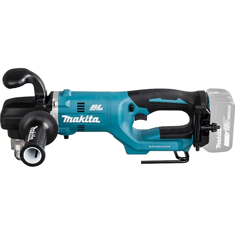 Аккумуляторная угловая дрель Makita DDA450ZK (без АКБ и ЗУ) оснащена кулачковым патроном 13 мм и двумя скоростями. Подходит для сверления отверстий сверлами до 65 мм и коронками до 127 мм.