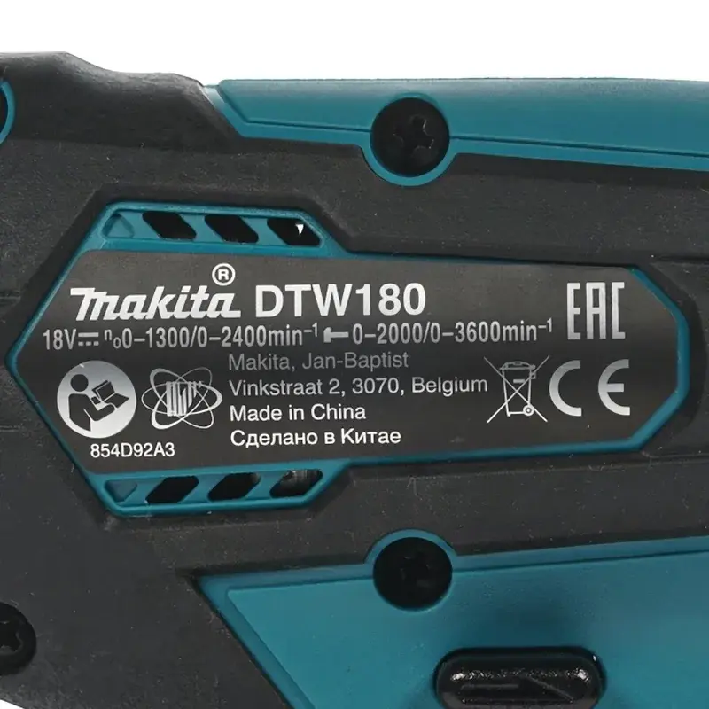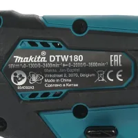 Переключение между скоростями выполняется кнопкой в основании рукоятки электрогайковерта Makita DTW180RFE. Более точная настройка осуществляется плавным нажатием на пусковую клавишу.