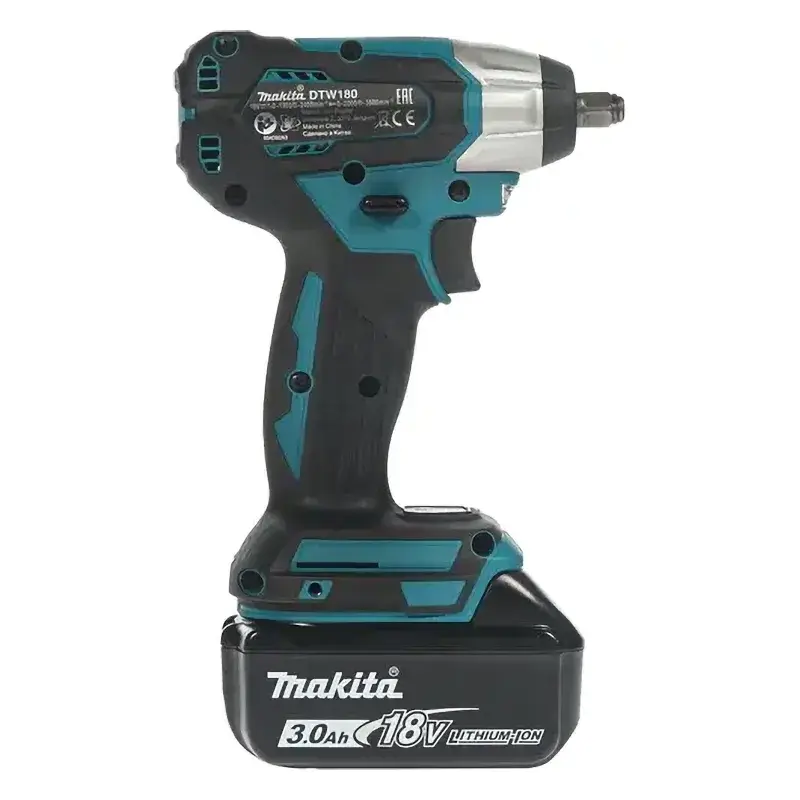 Аккумуляторный гайковерт Makita DTW180RFE оснащен ударным механизмом для работы с прочными креплениями и заворачивания в твердые материалы. В комплекте поставляются 2 аккумулятора емкостью по 3000 мА/ч для продолжительных работ без подзарядки.