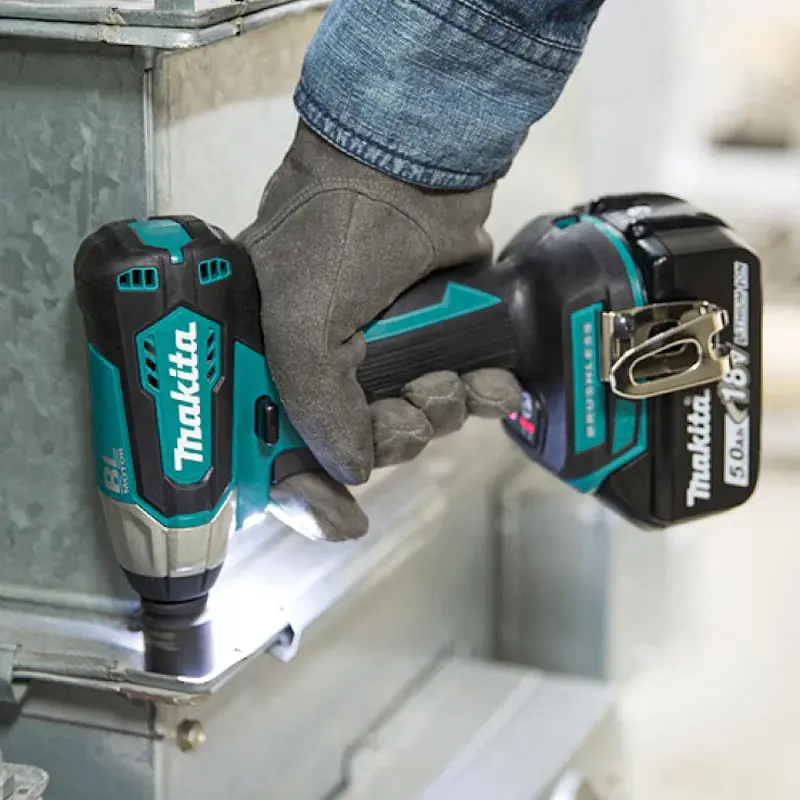 Динамический тормоз моментально останавливает вращение шпинделя при отпускании клавиши пуска болтоверта Makita DTW181RFE. Это позволяет выполнить точную работу, без перекручивания зажимов и срыва резьбы.