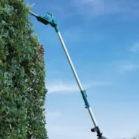 Штанговый телескопический кусторез Makita LXT 18В XPT DUN461WZ используется для подрезки живой изгороди и других декоративных кустарников и деревьев. Телескопическая штанга (от 1 889 мм до 2 511 мм) позволяет подравнять живые изгороди высотой до 4 м с учетом роста пользователя.