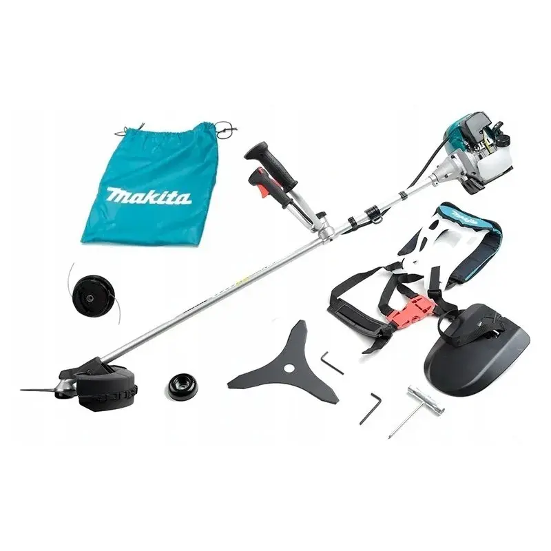 Бензокоса Makita EBH341U оборудована четырехтактным двигателем мощностью 1,45 л.с., который отличается экономичным расходом бензина. Одной заправки бака хватает для обработки территории площадью до 2600 м2. Триммер помогает в уходе за приусадебным участком, позволяя скашивать заросли высокой жесткой травы и бурьяна. Конструкция с регулируемой по высоте рукояткой велосипедного типа и ранцевым ремнем удобна для продолжительной работы. Максимальная скорость вращения шпинделя составляет 6850 об/мин.