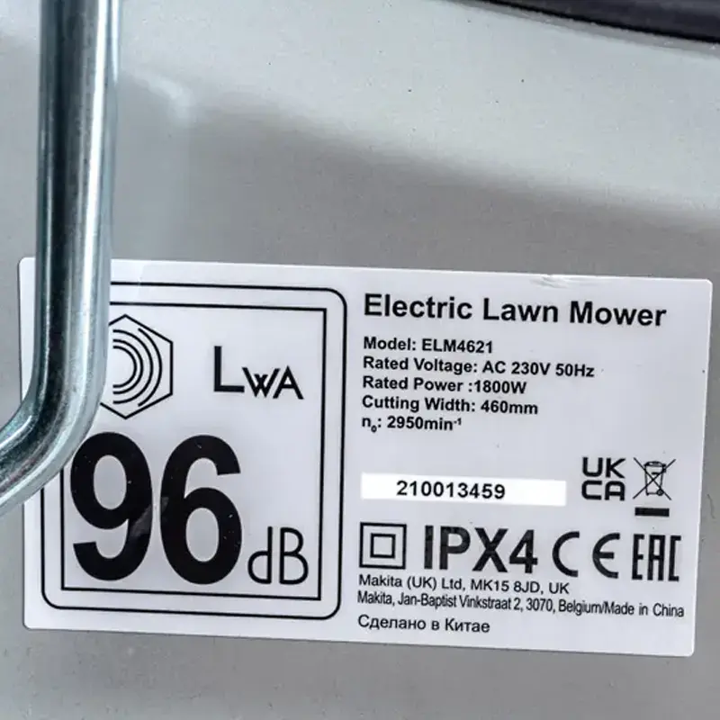 Ручка управления имеет трехступенчатую регулировку высоты. Удобные фиксаторы позволяют быстро изменить ее положение, выбрав подходящий уровень. Для компактного хранения и перевозки рукоятку можно сложить. Уровень шума газонокосилки Makita ELM4621 не превышает 96 дБ, что делает ее использование комфортным и необременительным.