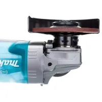Вал угловой шлифмашины Makita GA012GM201 фиксируется для безопасной и удобной замены оснастки. Для надежного удержания и ведения инструмента предусмотрена дополнительная боковая рукоятка, которая устанавливается с любой стороны.