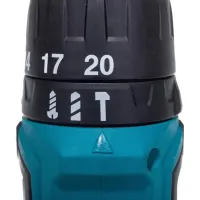 Крутящий момент шуруповерта Makita HP333DWAE регулируется с помощью поворотного кольца с 20-ю ступенями. Настройка позволяет адаптировать инструмент под работу с различными материалами. Например, для шурупов М4 которые ввинчиваются в мягкое дерево, подойдут первые 8 положений поворотного кольца.