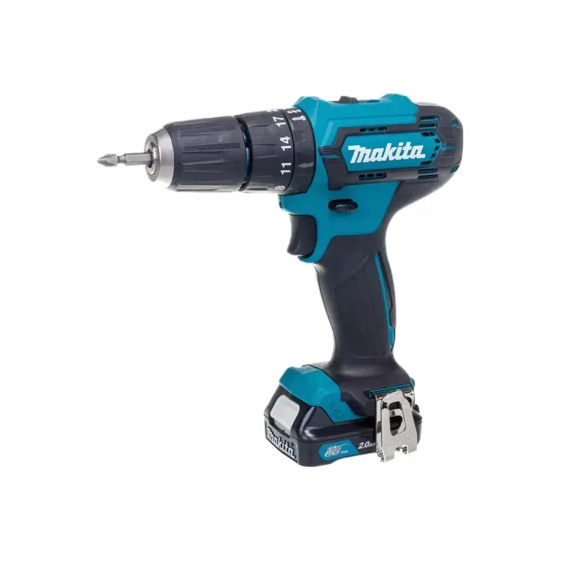 Аккумуляторный ударный шуруповерт Makita HP333DWAE используется для безударного или ударного сверления отверстий, а также для заворачивания крепежа. Поставляется в комплекте с зарядным устройством и двумя батареями.