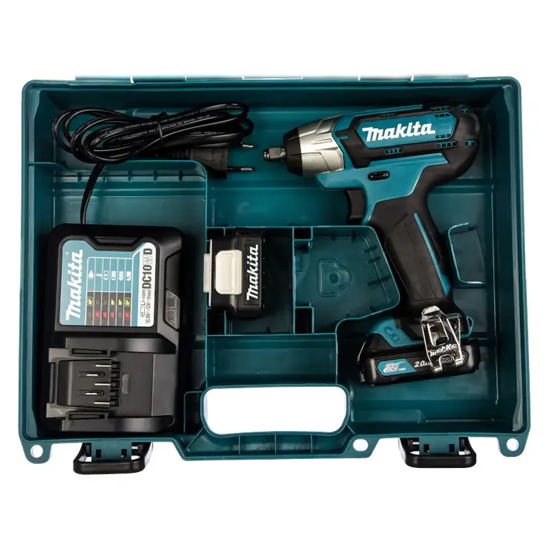 Аккумуляторный ударный гайковерт Makita TW140DWAE используется для сборки небольших конструкций на бытовом уровне. В комплекте поставляются 2 аккумулятора для продолжительных работ без остановок.
