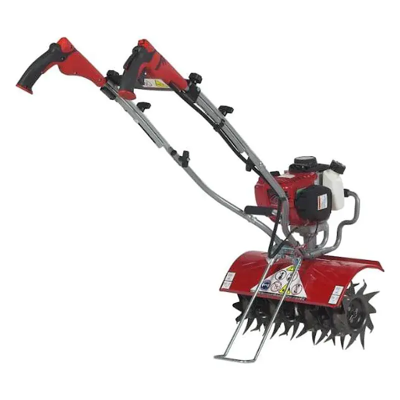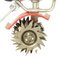 Культиватор перекапывает жесткий дерн и плотный грунт. Главная особенность этой модели - это увеличенный захват - 41 см. Хромированные ручки регулируются по высоте, что позволяет настроить агрегат под рост оператора. Фрезы змеевидной формы отлично измельчают землю. Двигатель характеризуется быстрым запуском и дополнительно защищен стальной дугой.