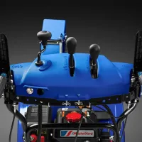 Регулировать направление и дальность выброса снега можно непосредственно с панели оператора бензинового снегоуборщика при помощи удобных рукояток. Переключатель скоростей позволяет выбирать необходимый темп передвижения в зависимости от нагрузки и пятиться задним ходом. В темное время суток можно включить фары, чтобы улучшить видимость на дороге.