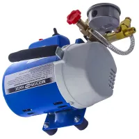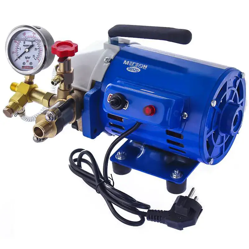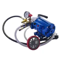 Опрессовочный насос МЕГЕОН 98120 используется для проверки герметичности закрытых контуров трубопровода или резервуаров с водой. Предельное нагнетаемое давление составляет 2,5 МПа. Контроль значений в испытываемой системе осуществляется по манометру с аналоговой шкалой. 17-литровый резервуар опрессовщика представляет собой пластиковый ящик, в котором поставляется насос. Редукционный клапан позволяет плавно регулировать рабочее давление. В комплекте поставляются три шланга, переходник, уплотнения и фильтр грубой очистки. Устройство работает от бытовой сети с напряжением 220 В.