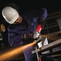 Двигатель сетевой болгарки мощностью 1550 Вт покрыт эпоксидной смолой для эффективной защиты от образующейся в процессе работы абразивной пыли и увеличения срока службы. Максимальная частота вращения шпинделя достигает 11000 об/мин без нагрузки. Металлический корпус редуктора повышает надежность инструмента. Встроенная электроника поддерживает постоянную скорость вращения при повышенной нагрузке. Максимальная глубина реза составляет 33 мм.