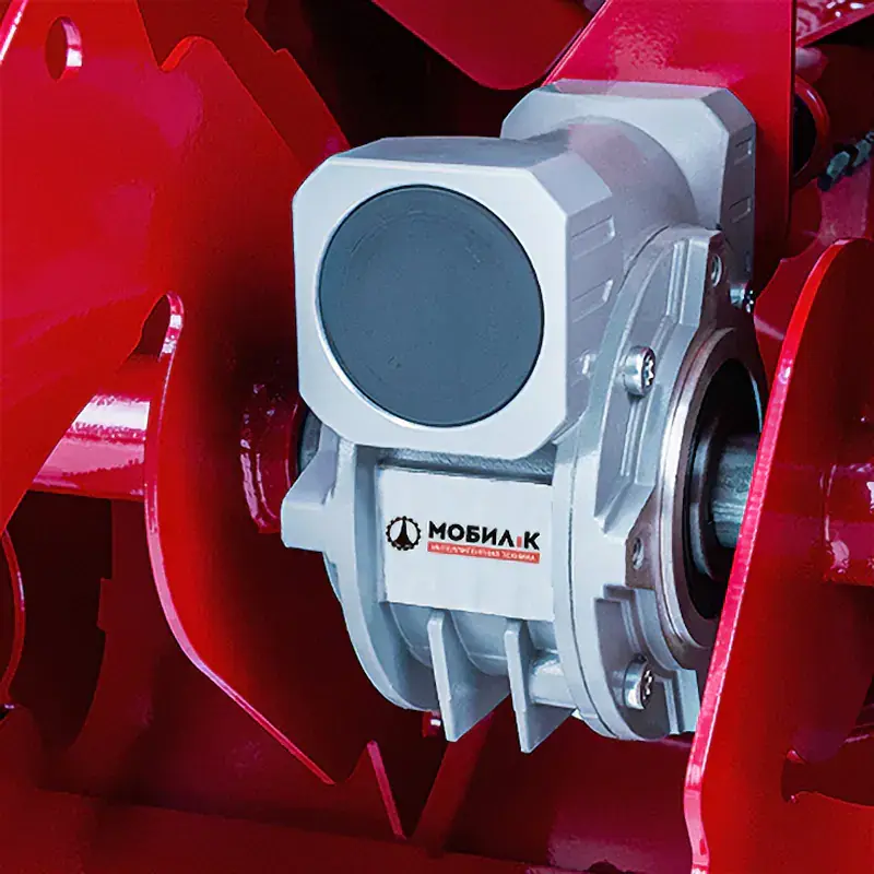 Редуктор Мобил K HIGHSPEED WARM GEER WG1 самоходного снегоочистителя Мобил К С65LC170FS сконструирован таким образом, что дальность выброса снежной массы повышается до 30 %. Он расположен в масляной ванне, обладает усиленным червяком и оснащен червячным колесом отношением 1:7. А для повышения прочности есть турбина-крыльчатка с ребрами жесткости.
