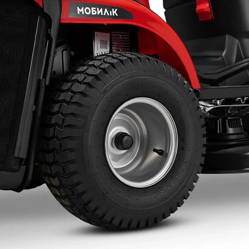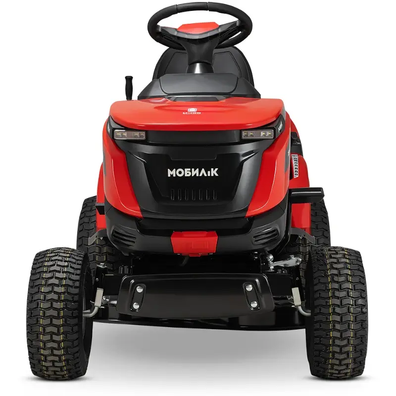 Трактор оснащён электрическим приводом и питается от сменных литий-ионных батарей платформы МОБИЛ К 60 В ПРЕМИУМ, которые приобретаются отдельно. В работе можно использовать от 2 до 6 аккумуляторов ёмкостью 5 и 10 Ач в любом сочетании. Запас энергии варьируется от 600 до 3600 Вт*ч, в зависимости от комплектации батарей, что определяет длительность работы на одном заряде. Три бесщеточных высокоэффективных двигателя приводят в движение трактор и режущую дека: один двигатель расположен в заднем мосту, обеспечивая скорость до 12 км/ч (при кошении — до 9 км/ч) вперёд и до 4 км/ч назад, а два других вращают ножи косильной деки. На одном заряде аккумулятора машина способна покосить до 9000 м2 (90 соток). В комплект входит зарядное устройство, которое одновременно заряжает все установленные в трактор аккумуляторы.