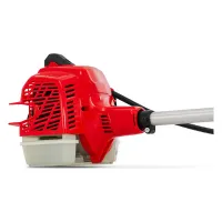 Во время кошения от обрезков травы и мелких камней вас защитит кожух. Кнопка STOP возвращается в исходное положение после выключения двигателя. Антивибрационная система представляет собой механизм со стальными пружинами. За счет этого ваши руки не будут быстро уставать во время удерживания садовой бензокосы.