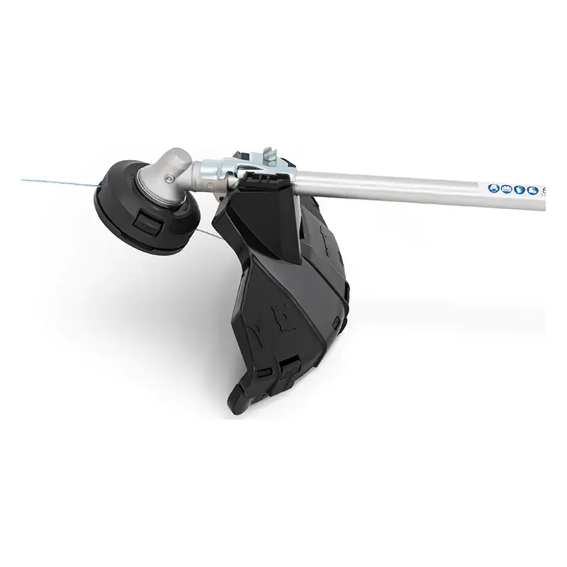 Бензиновый триммер оборудован системой легкого запуска двигателя, благодаря которой не требуется прикладывать усилий и делать резких рывков при вытягивании троса стартера. Ручной насос подкачки топлива упрощает запуск холодного мотора. В качестве режущей насадки можно установить металлический трехлопастной нож или триммерную катушку. На защитном кожухе находится лезвие для подрезания излишков лески во время кошения. В целях безопасности курок газа оснащен блокиратором. Двигатель можно быстро заглушить при помощи кнопки зажигания, которая автоматически возвращается в исходное положение и упрощает повторное включение.