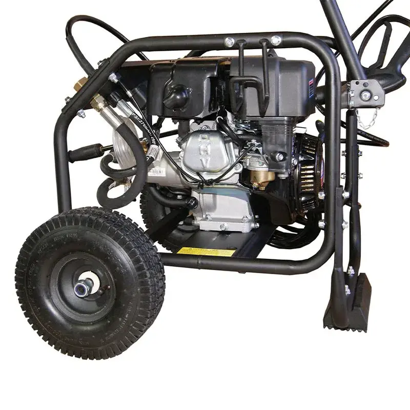 Бензиновый тип питания позволяет брать с собой мойку даже в те места, где не предусмотрена розетка. С данной моделью вы можете свободно перемещаться по участку и при этом не путаться в проводах, в отличие от электрических аналогов.