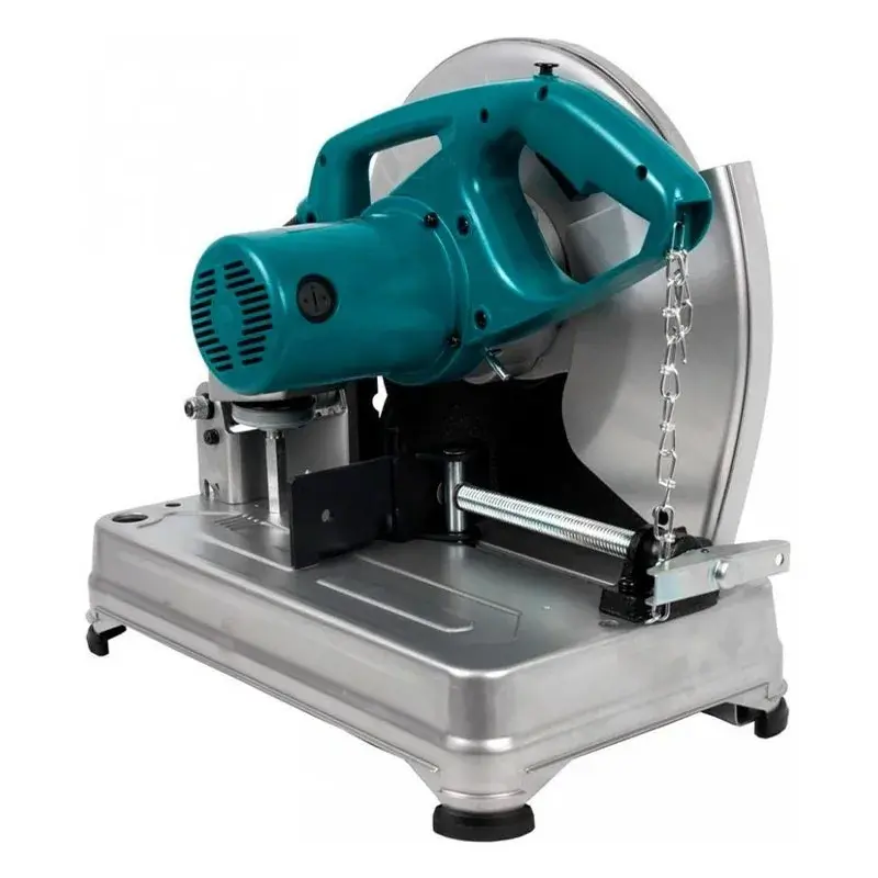 Монтажная пила Makita 2414NB подходит для распиливания металлических заготовок или изделий из ПВХ толщиной до 115 мм. Наверху расположена рукоятка для комфортного хвата во время работы.