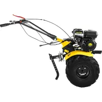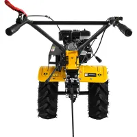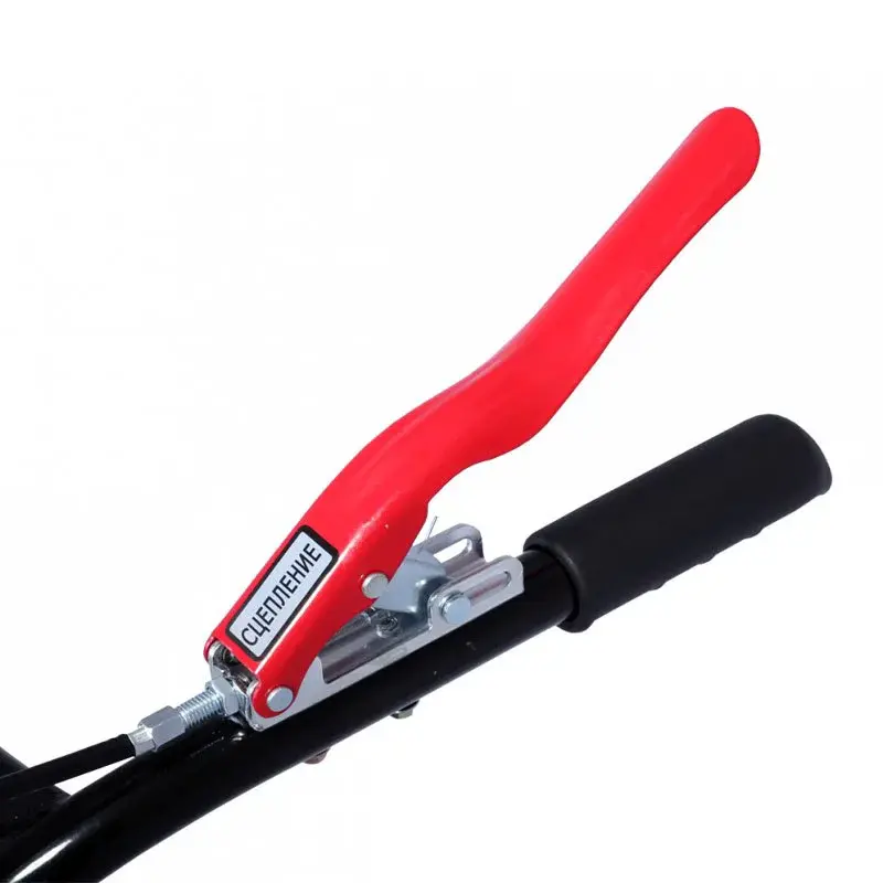 Машина полностью управляется с рабочего места, рычаги газа и сцепления вынесены на рукоятки инструмента, а переключатель передач расположен прямо под рулем. Резиновые накладки обеспечивают комфортную работу с мотоблоком в любое время года и не позволяют ладоням соскользнуть с него.