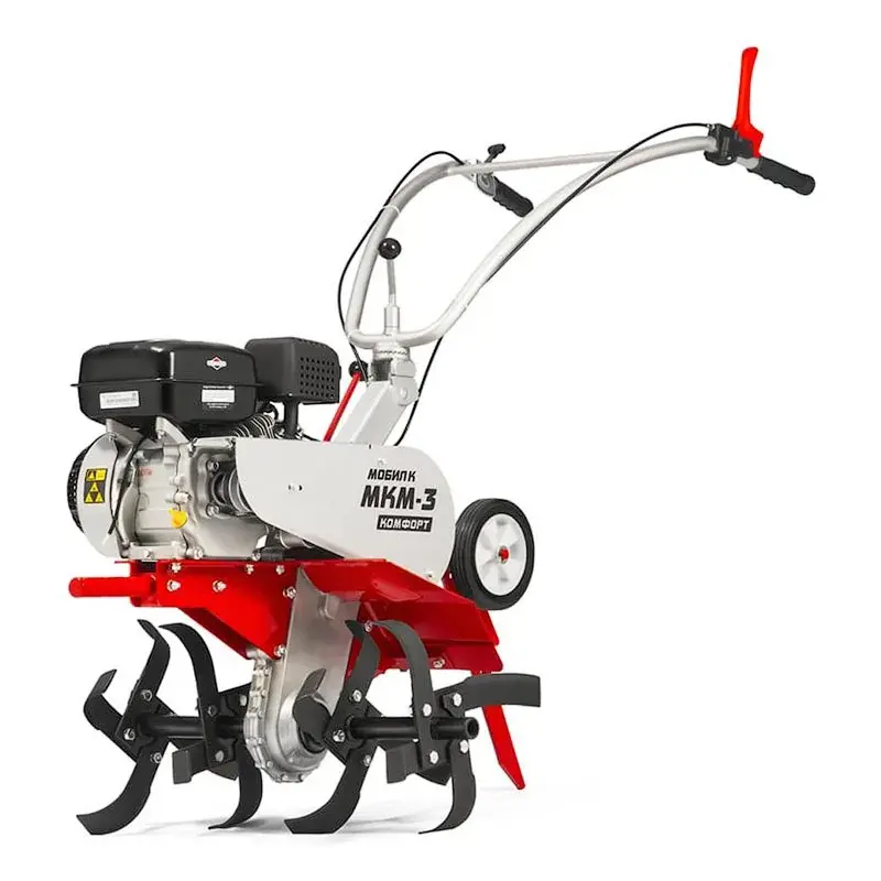 Мотоблок Мобил К МКМ-3 КОМФОРТ - профессиональный аппарат с возможностью работы как с фрезами, идущими в комплекте, так и с дополнительным навесным оборудованием. Ширина культивации почвы составляет 73 см, а рекомендуемая площадь территории для обработки - 3500 м2. В этой модели используется ряд собственных разработок компании Мобил К, призванных повысить комфорт при работе и сделать управление мотоблоком простым и понятным.