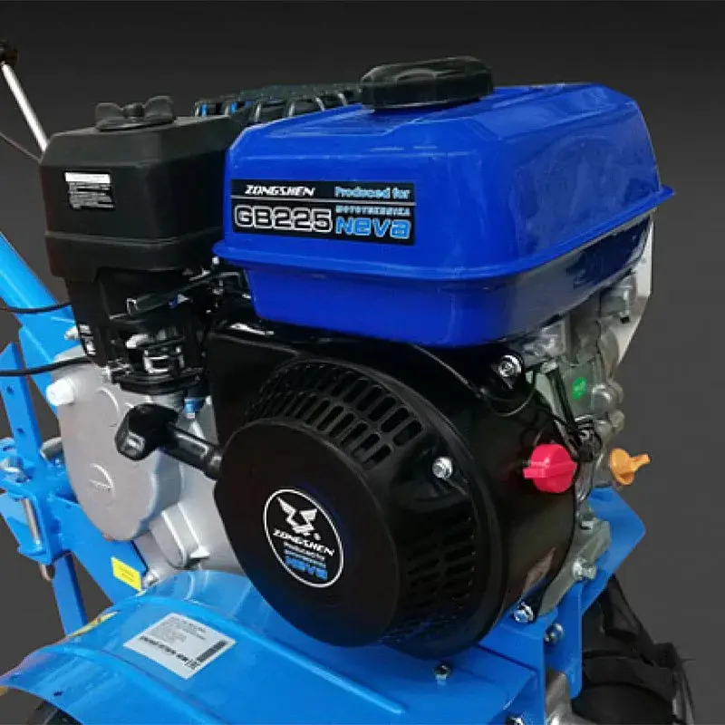 Мотор не отделен от рамы платформой, как в большинстве других моделей, поэтому снижен уровень вибрации при эксплуатации. Пневматические колеса мотоплуга Нева МБ2-КС (GB225) оснащены протекторами для хорошего сцепления с поверхностью. Жесткая рулевая колонка повышают удобство управления машиной. Специальные закрылки защищают вас от выбрасываемой земли, мелких камней.