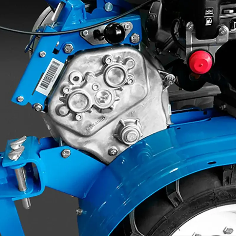 Обтекаемая форма редуктора практически не задевает почву. За счет этого мотокультиватор не оставит широких борозд после использования, что способствует равномерному разрыхлению земли.