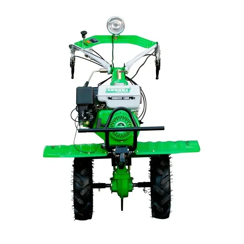 Бензиновый мотоблок Aurora COUNTRY 1000 мощностью 7 л.с. с трехскоростной коробкой передач предназначен для обработки больших участков. В комплекте предусмотрены 24 фрезы для культивации почвы. Эту модель можно также оснастить сенокосилкой, плугом, снегоуборочным ковшом, мотопомпой, телегой и прочим навесным оборудованием.
