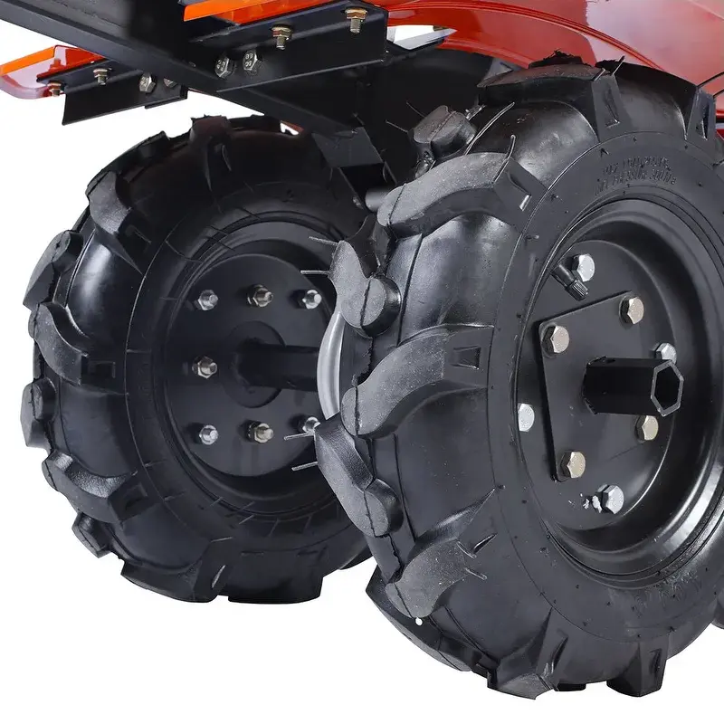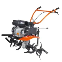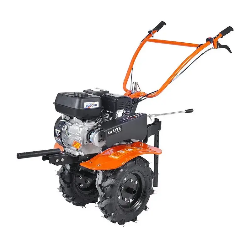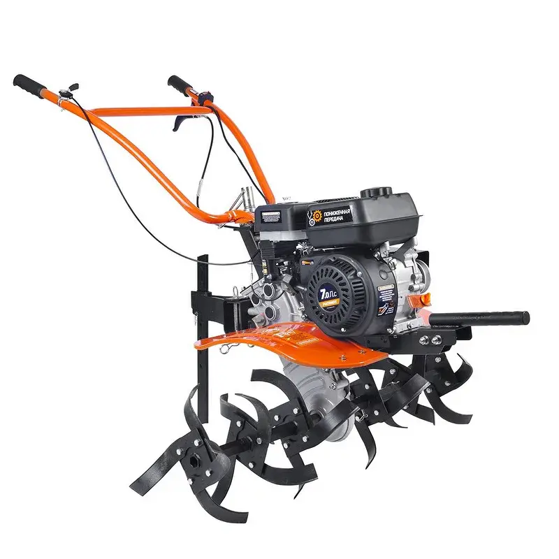 Корпус редуктора изготовлен из алюминия, что увеличивает срок службы и устойчивость к механическим воздействиям. Наличие пониженной первой передачи гарантирует комфорт при выполнении различных задач. Брызговики защищают от земли, вылетающей из-под колес.