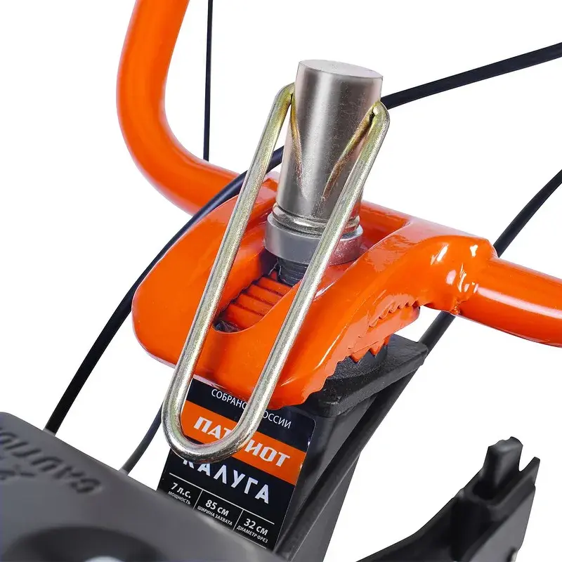 Бензиновый мотоблок оборудован 4-тактным двигателем Patriot Р170FB мощностью 7 л.с., который раскручивает режущие элементы до максимальной скорости 108 об/мин. Модель оснащена закаленными фрезами диаметром 32 см, которые позволяют обрабатывать тяжелый грунт. В комплект поставки включен сошник, при помощи которого можно регулировать глубину вспашки.