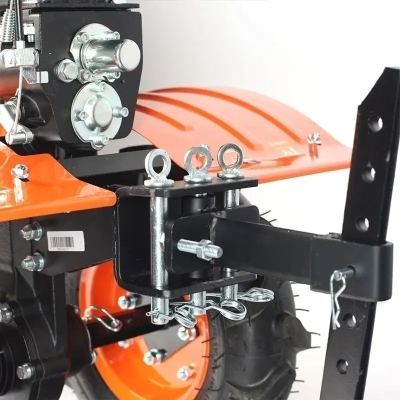 Рама с цепкой выдерживает большие нагрузки. Благодаря этому к мотоблоку можно крепить даже тележку для перевозки груза.