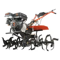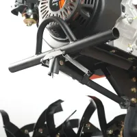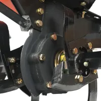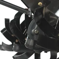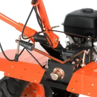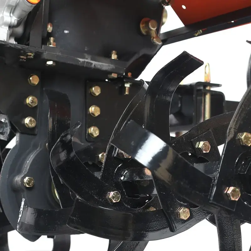 Фрезы с изогнутыми лезвиями, идущие в комплекте, подходят для обработки твердых почв, например целины. Вы также можете устанавливать другое навесное оборудование, которое докупается отдельно. Для этого предусмотрена усиленная рама со сцепкой. Благодаря этому можно установить грузовую тележку, плуг и т.п. без переходника. Вал отбора мощности позволит использовать газонокосилку, щетку и любое другое активное навесное оборудование.