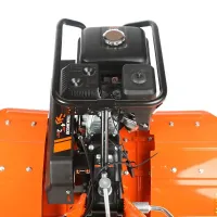Для удобного использования предусмотрена складная рукоятка с функцией вертикальной регулировки. Резиновые накладки на ручках обеспечивают комфорт при продолжительных работах.