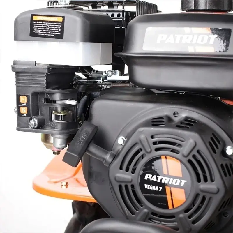 Мотоблок Patriot Vegas 7 - сельскохозяйственная машина с 4-тактным бензиновым двигателем на 7 л.с. Аппарат предназначен для обработки почвы фрезами с глубиной погружения до 35 см. А благодаря валу отбора мощности, на модель можно установить дополнительное навесное оборудование. Это делает культиватор универсальным инструментом.