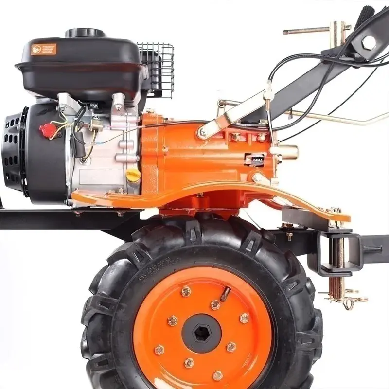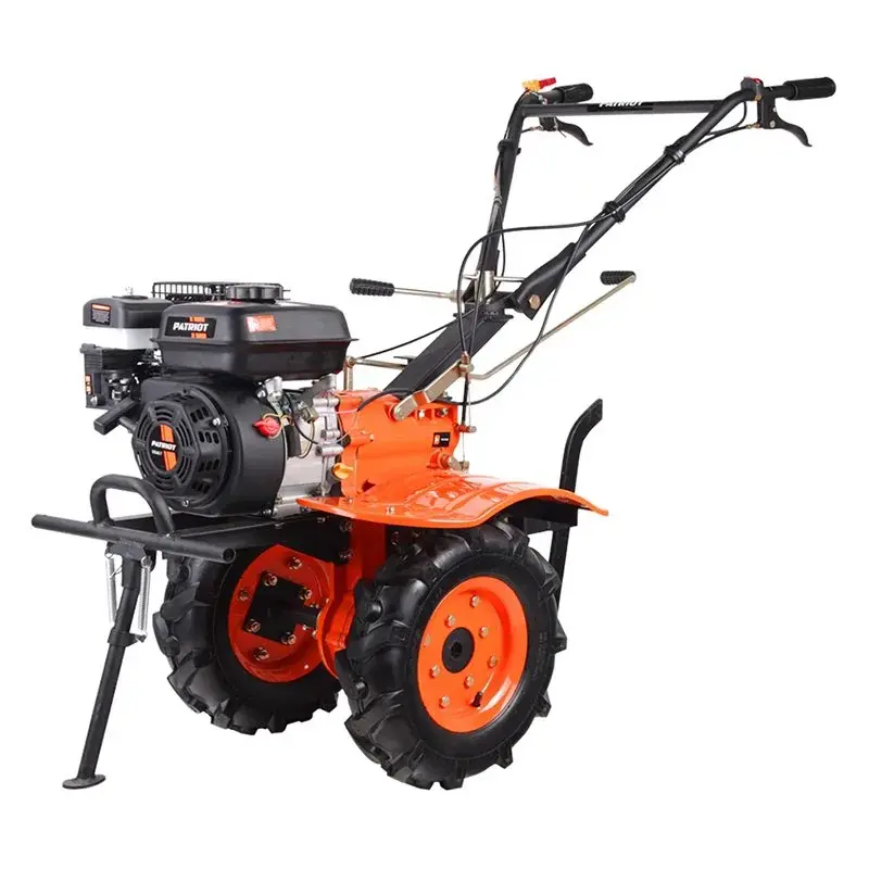 Бензиновый мотоблок Patriot Vegas 7 оснащен пневматическим колесами с агрессивным протектором. Это упрощает движение по грязи и неровной поверхности.