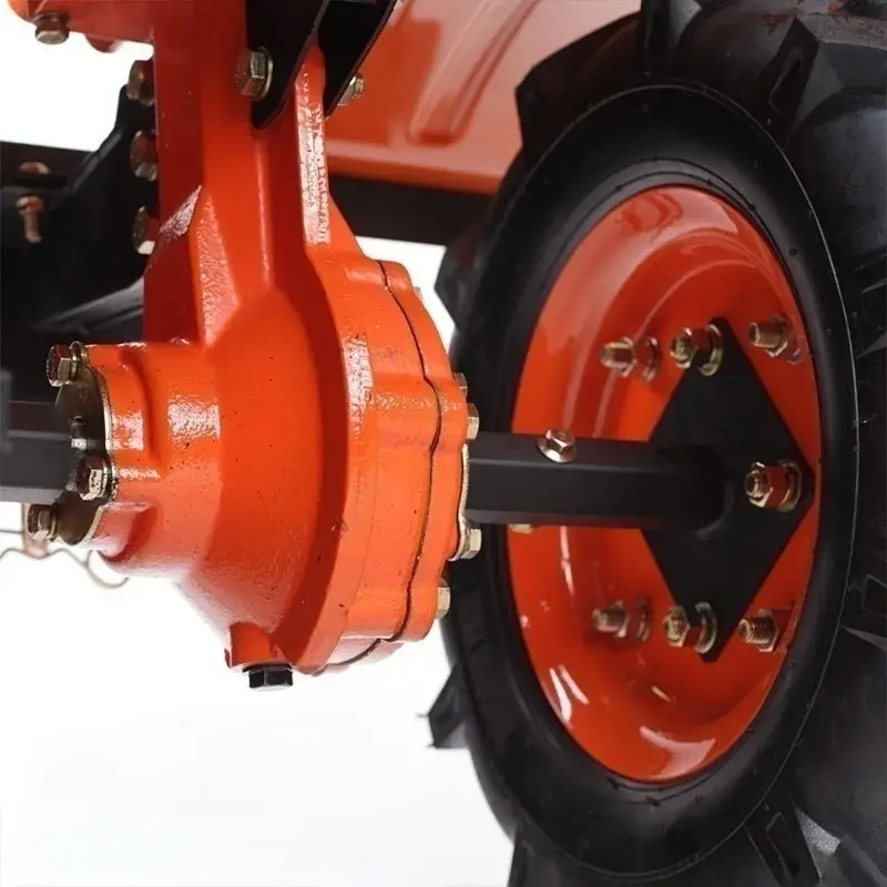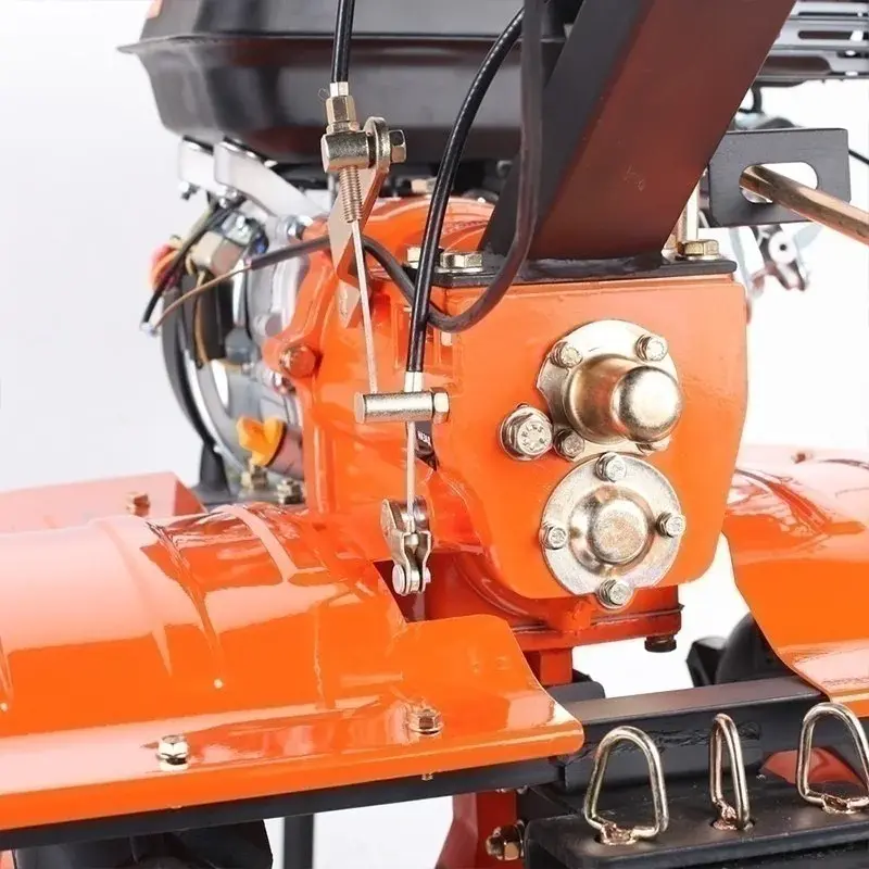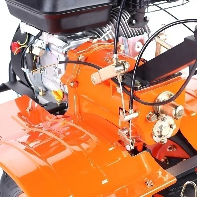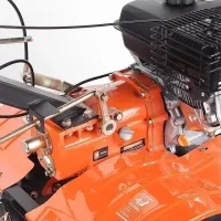На выбор есть 2 скорости движения вперед, а также задний ход. Передние передачи позволят вам подобрать оптимальный темп работы для каждой конкретной задачи. А реверс пригодится для ускорения разворота и в случае, если фрезы застряли в обрабатываемой земле.