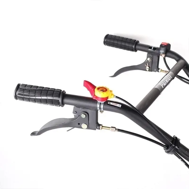 Резиновые накладки на ручках управления предотвращают скольжение ладоней и способствуют точному управлению аппаратом. Руль регулируется в 2-х плоскостях: по вертикали и по горизонтали. За счет этого вы подобрать оптимальное положение под ваш рост, а также под конкретную задачу. Например, подвинуть рукоять вбок для того, чтобы не наступать на только что обработанную землю.