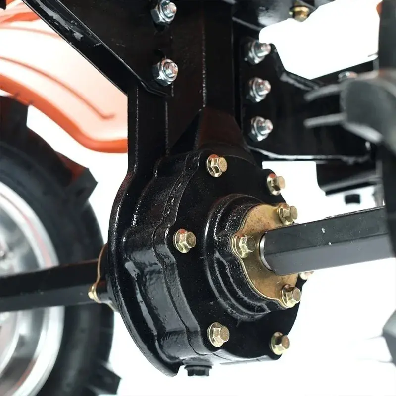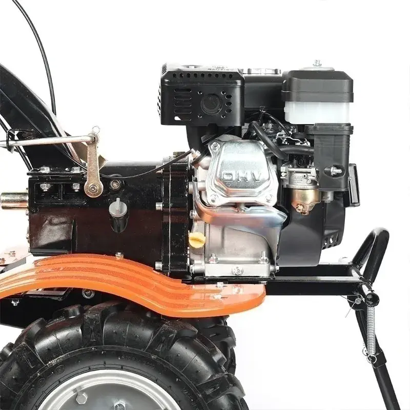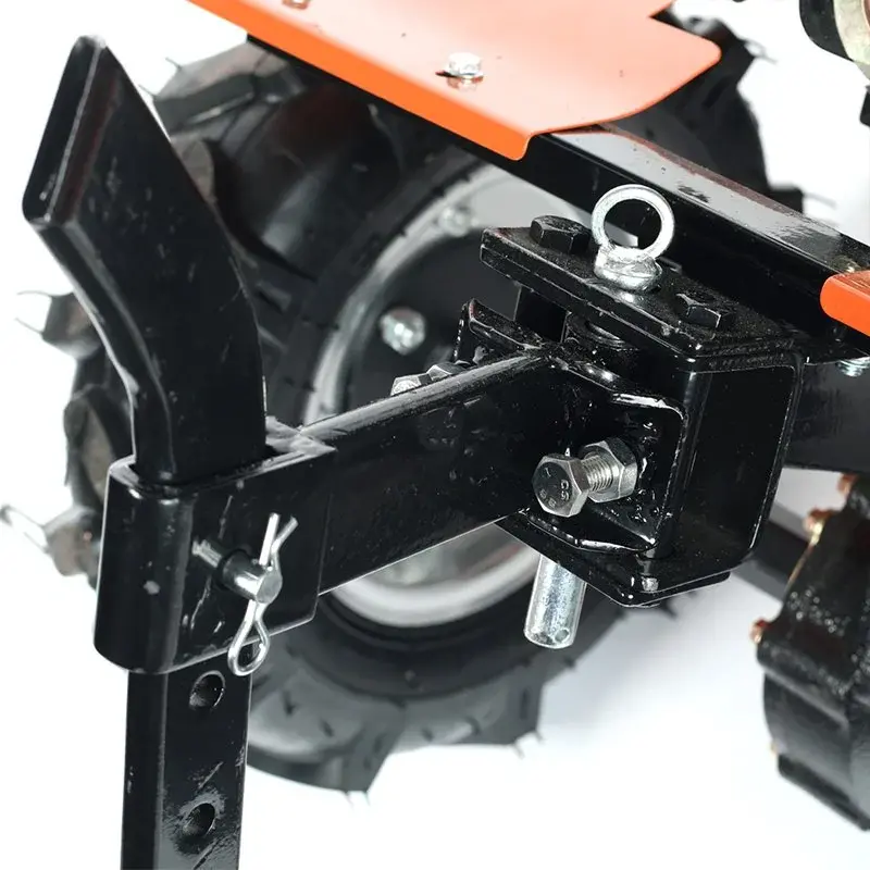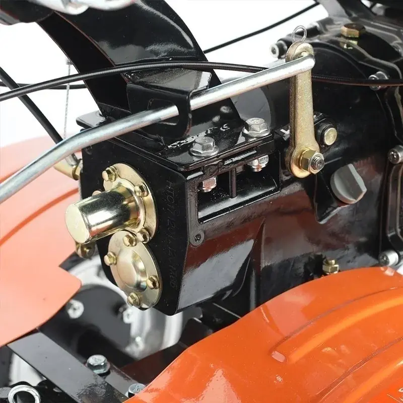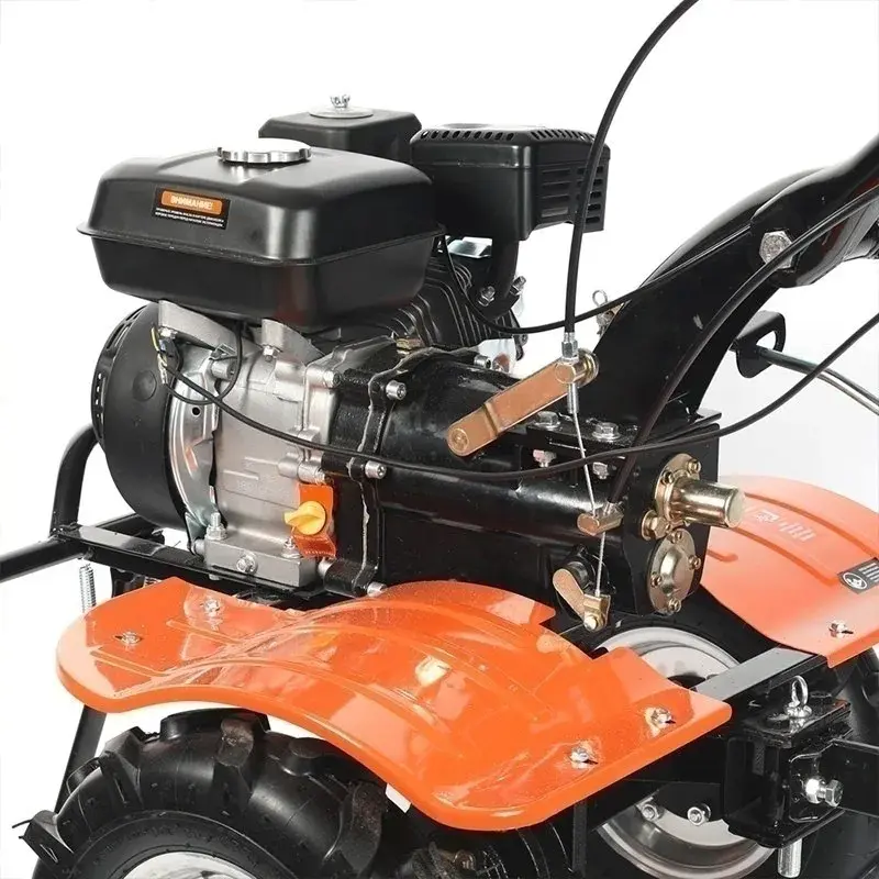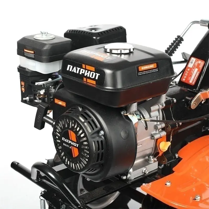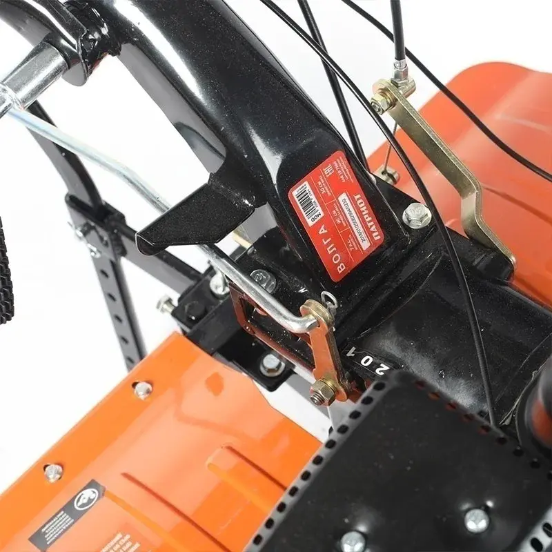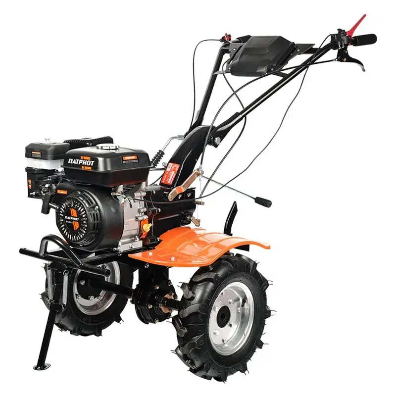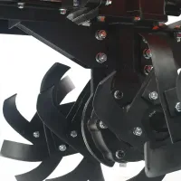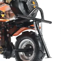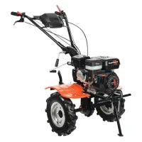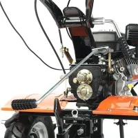 Мощный бензиновый мотоблок с многодисковым сцеплением в масляной ванне, валом отбора мощности и шестеренчатым редуктором укомплектован фрезами и пневматическими колесами, что позволяет использовать мотоблок для культивирования сразу "из коробки". Ножи на фрезах имеют усиленную конструкцию для работы по различным почвам. Тележка для мотоблок подходит практически любая, а если и понадобится переделка, то она будет минимальна и ее можно произвести без обращения в сервисный центр. Отдельно можете приобрести и установить тележку, плуг, окучник, картофелевыкапыватель.
