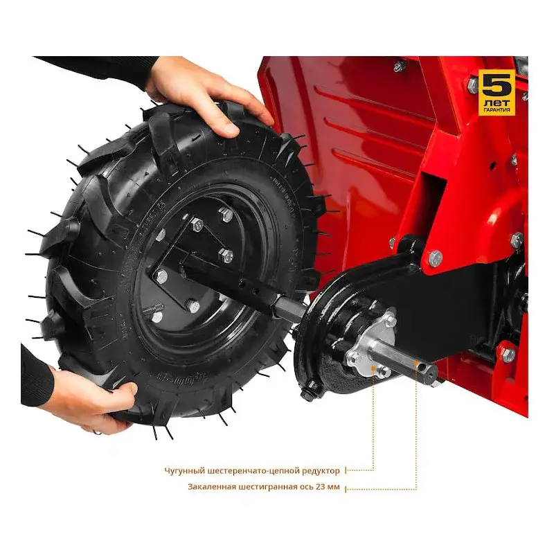 Бензиновый мотоплуг приводится в движение 4-тактным двигателем, который гарантирует высокую производительность даже под постоянными высокими нагрузками.