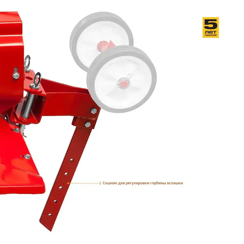 Щитки закреплены над колесами и обеспечивают защиту от разлетающейся земли. Кроме того, они служат дополнительным упором, который не позволяет инструменту застрять в земле при вспашке.