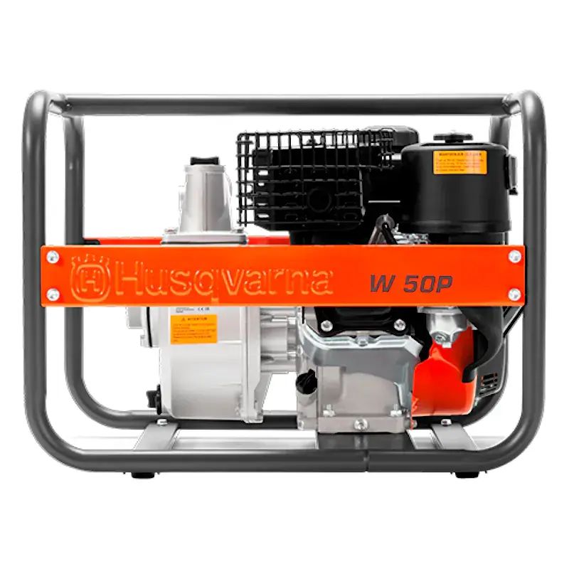 Мотопомпа Husqvarna W50P оснащена 4-тактным бензиновым двигателем мощностью 5,7 л.с., который заводится с помощью ручного стартера. Насос способен нагнетать воду на высоту до 28 м, забирая ее с глубины до 7 м. Скорость потока достигает 466 л/мин. Устройство используется для перекачки чистой или слабозагрязненной воды в хозяйственных и промышленных целях. Топливный бак емкостью 3,6 л обеспечивает продолжительную непрерывную работу на одной заправке.