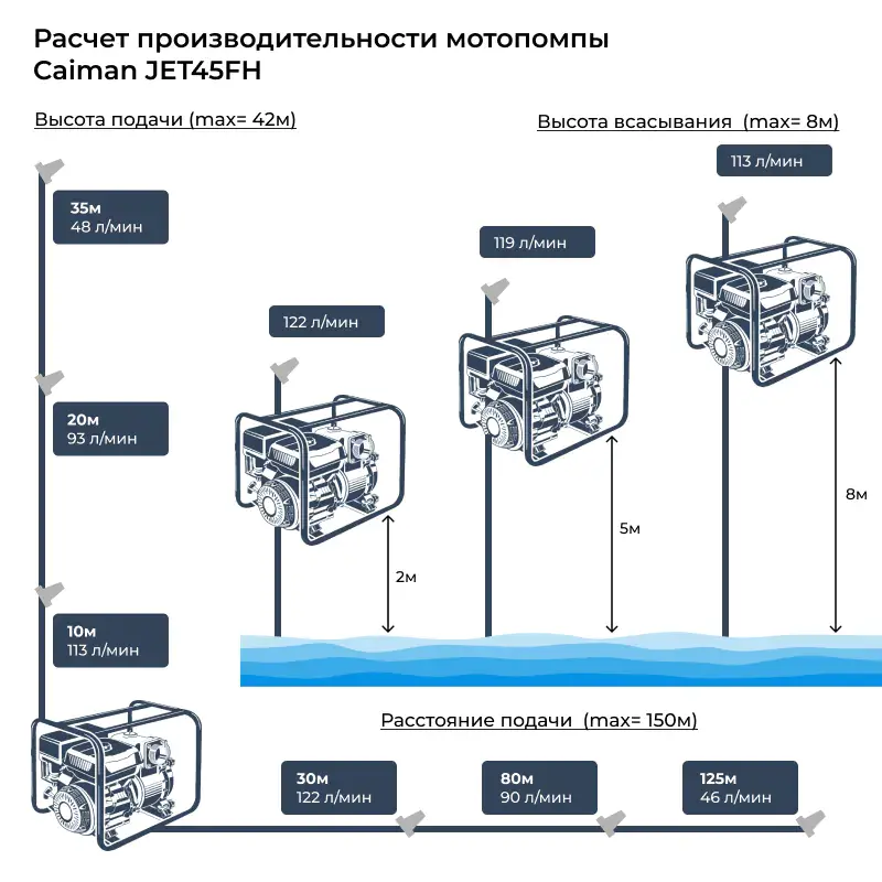 Высоконапорная мотопомпа Caiman JET45FH предназначена для перекачивания чистой воды под давлением. Такую мойку можно использовать в сельском хозяйстве, для мойки крупной техники, фасадов зданий, а также при необходимости экстренного наполнения различных емкостей.