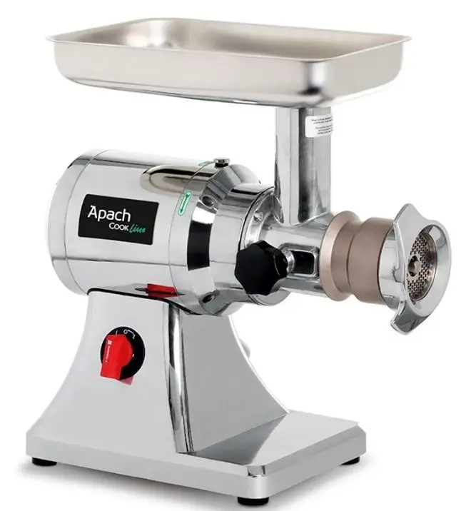 Мясорубка Apach ATS12U 1/2 УНГЕР 1Ф. CE применяется на профессиональной кухне. Сочетает в себе оптимальную производительность и простоту в использовании. Предназначена для приготовления различных видов фарша на предприятиях общественного питания и торговли. Комплект ножей 1/2 унгер позволяет достичь достаточно высокой степени измельчения.