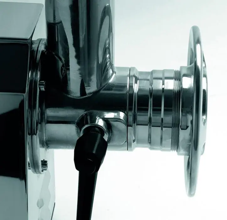 Мясорубка данной модели характеризуется высокой прочностью комплектующих и отличным внешним видом. Загрузочное устройство мясорубки соответствует всем требованиям безопасности. Антикоррозийная облицовка из нержавеющей стали защищает от появления ржавчины на поверхностях мясорубки. Оптимальная конструкция мясорубки делает возможным ее использование в небольших помещениях, где площадь рабочего места ограничена.