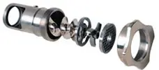 Мясорубка выполнена из материалов, устойчивых к коррозии и износу, что повышает ее надежность и долговечность, и оснащена мясорубочной системой полный унгер (1 подрезной нож, 2 двойных ножа, 2 решетки с отверстиями диаметром 10 и 6 мм), измельчающей мясо трижды за один проход.