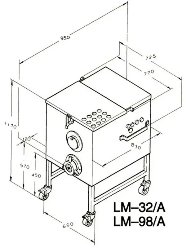 Автоматический волчок Koneteollisuus LM-98/A с системой ножей Unger (чугунный корпус, шнек из нержавеющей стали, с педалью) предназначен для для измельчения мяса и получения фарша, купат и колбасок.