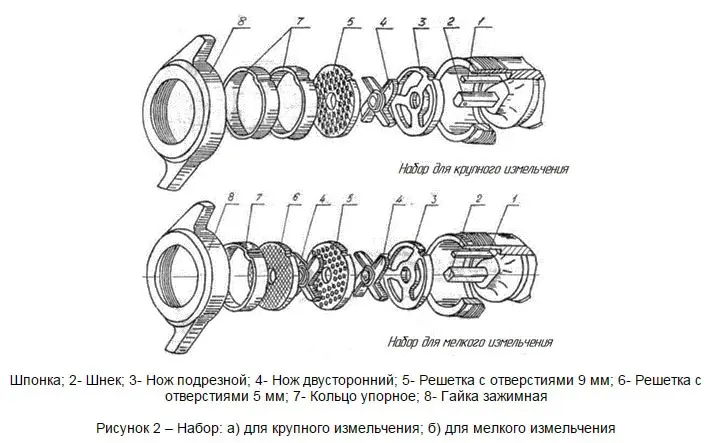 Мясорубка обслуживается стандартным слесарно-монтажным инструментом.