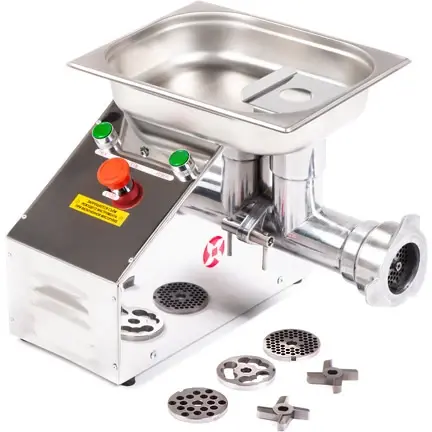 Мясорубка Торгтехмаш ТМ-12М с системой ножей Unger предназначена для измельчения мяса (без жил и сухожилий) и рыбы на фарш, повторного измельчения котлетной массы и набивки колбас на предприятиях общественного питания.