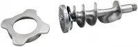 Для предотвращения перегрузок двигателя, при наматывании жил на ось шнека, в модели предусмотрена функция реверса. Достаточно остановить мотор, некоторое время удерживая нажатой кнопку реверса. Шнек мясорубки начнет вращаться в другую сторону, и жила сама выйдет наружу.