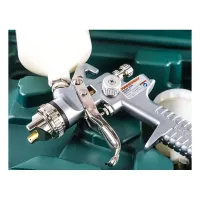 Покрасочный пистолет конвенционального типа и гравитационной подачей ЛКМ применяется для производства малярных работ со всеми типами лакокрасочных материалов. Изделие доступно к приобретению в виде набора.